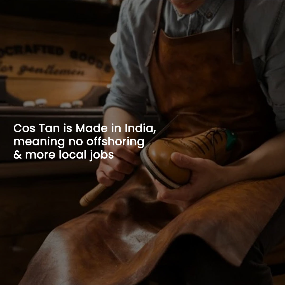 India’s footwear and allied industries employ over 2 million people, many of them artisans whose craft has been passed down for generations. By choosing to manufacture locally, Cos Tan helps sustain livelihoods, preserve artisanal skill, and support fair wages within India’s growing sustainable fashion economy.