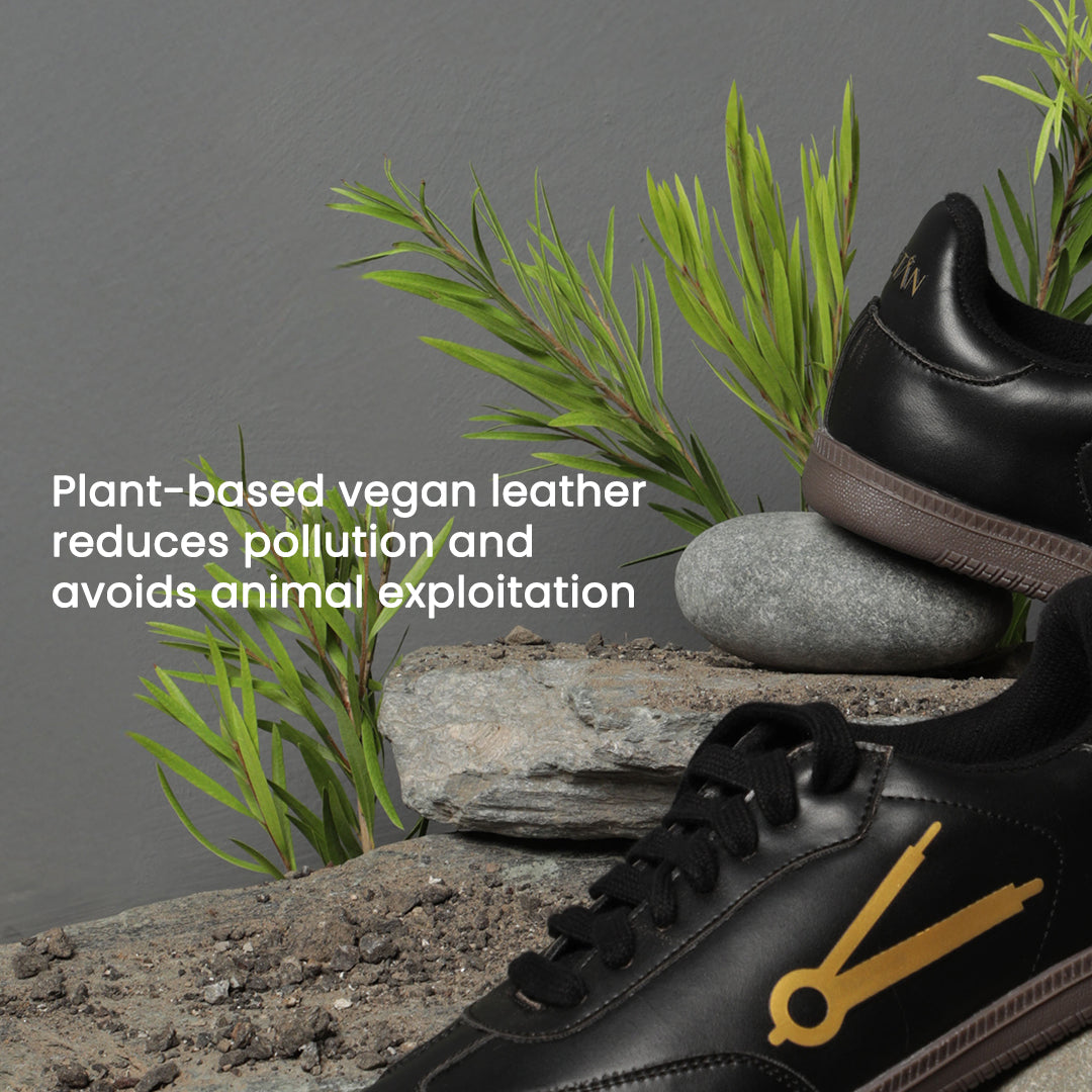 Our sneakers are made with vegan leather, recycled components, and low-impact materials that drastically reduce toxic runoff and water use. A pair of responsibly made vegan sneakers can cut carbon emissions by up to 60% compared to conventional leather ones.